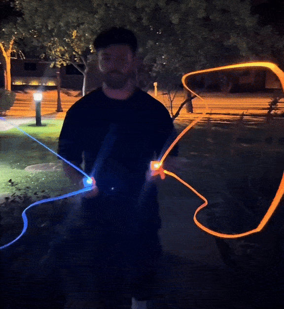 Замислите да у руци држите светлосни конац који пркоси гравитацији. Покреће се невероватном брзином преко 60 км/хи прати сваки ваш покрет. Резултат? Хипнотишући облици светлости који изгледају као магија.